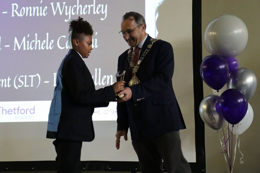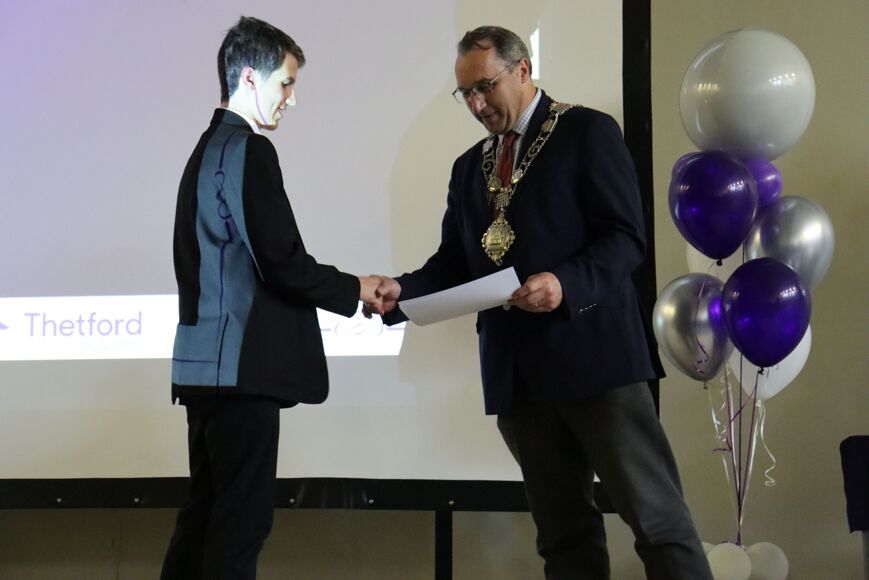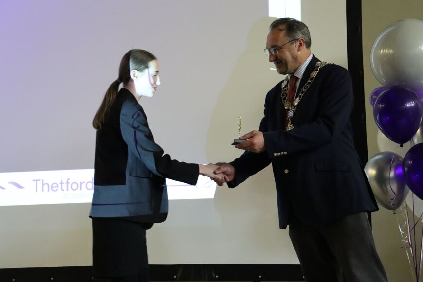 Over 400 people attended the event, including students, friends and family, and members of the community. Thetford Academy was delighted to secure two special guest appearances for the event. The Mayor of Thetford presented the Achievements Awards for all Year groups, and Jenny Simpson, the Operations Officer for the Duke of Edinburgh’s Award in West Norfolk, East Cambridgeshire and West Suffolk awarded those who achieved their Bronze, Silver and Gold Award.