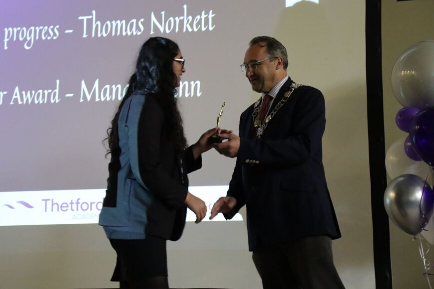“I was really pleased to be able to attend the Thetford Academy Awards Evening. I was impressed by the array of awards covering every aspect of the curriculum, and to see so many young people’s hard work celebrated with their families, teachers and peers.