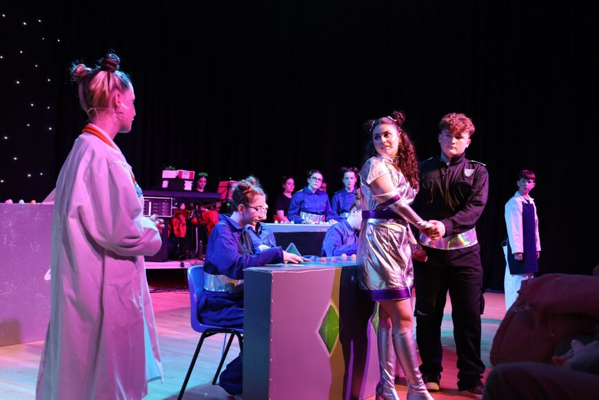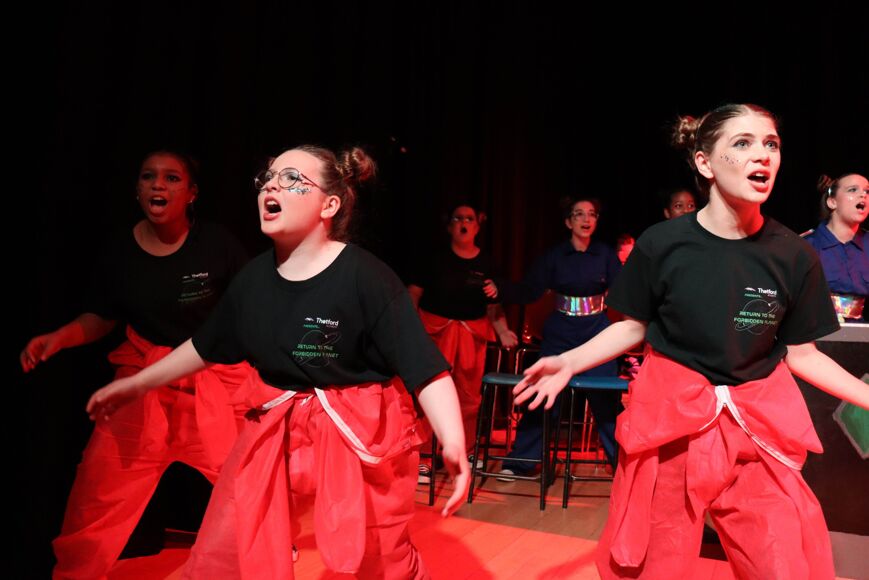 On Tuesday 26th and Wednesday 27th March, students from Year 7 to 10 gave an outstanding performance of ‘Return to the Forbidden Planet’ to a packed auditorium at Thetford Academy. The production combines music, comedy, and science fiction, and is loosely based on Shakespeare's play, The Tempest.